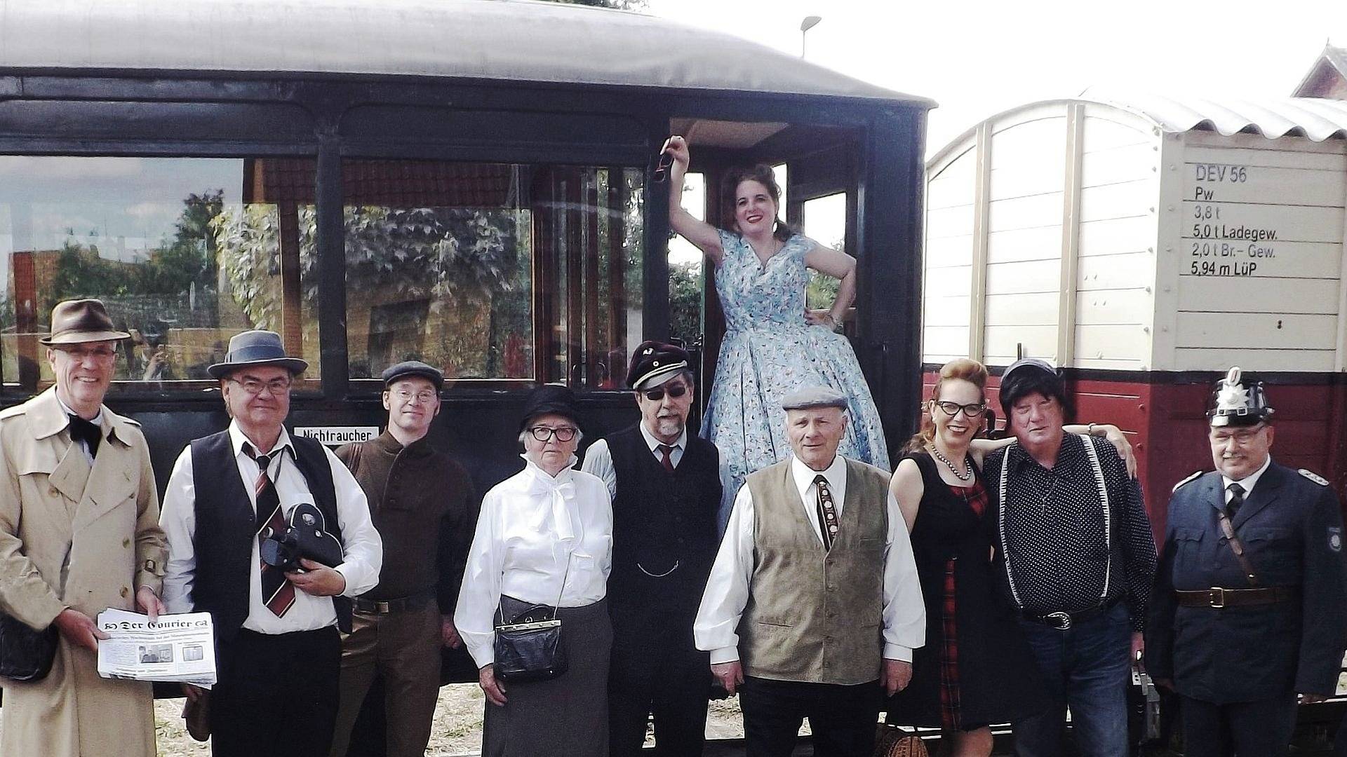 Wir treffen uns in authentischer, originaler und zum Teil nachgeschneiderter Kleidung an den historischen Wochenenden ("Um 1900" und "Wirtschaftswunderzeit"), um die Themen-Fahrtage bunter zu gestalten und zu beleben. Dabei entstand die Kurzfilm-Reihe "DEV-Wochenschau" mit spannenden Geschichten mit und bei der Kleinbahn. Seit 2016 wurden bereits 13 Folgen und 4 Trickfilme über "Franzi" abgedreht.
