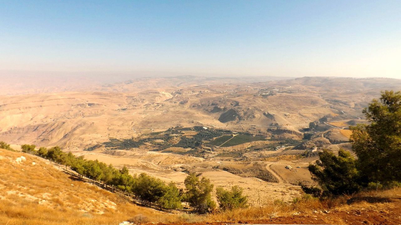 Blick vom Berg Nebo auf das biblische "Gelobte Land"