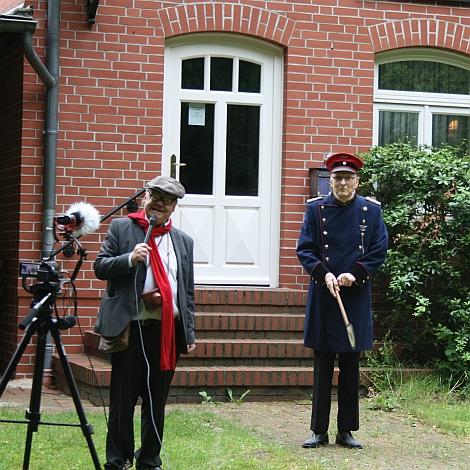 Drehpause für unsere Darsteller: Der "Gutsherr" und "seine Arbeiter"
